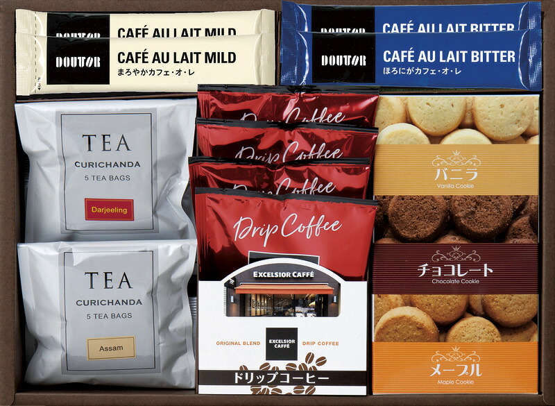 エクセルシオールカフェは、ドトールが都市群を中心に展開するカフェチェーンです。本格派のドリップコーヒーと、コーヒーとの相性が抜群のサクサク食感のクッキー・香り高い紅茶のアソートセットです。 商品番号 …