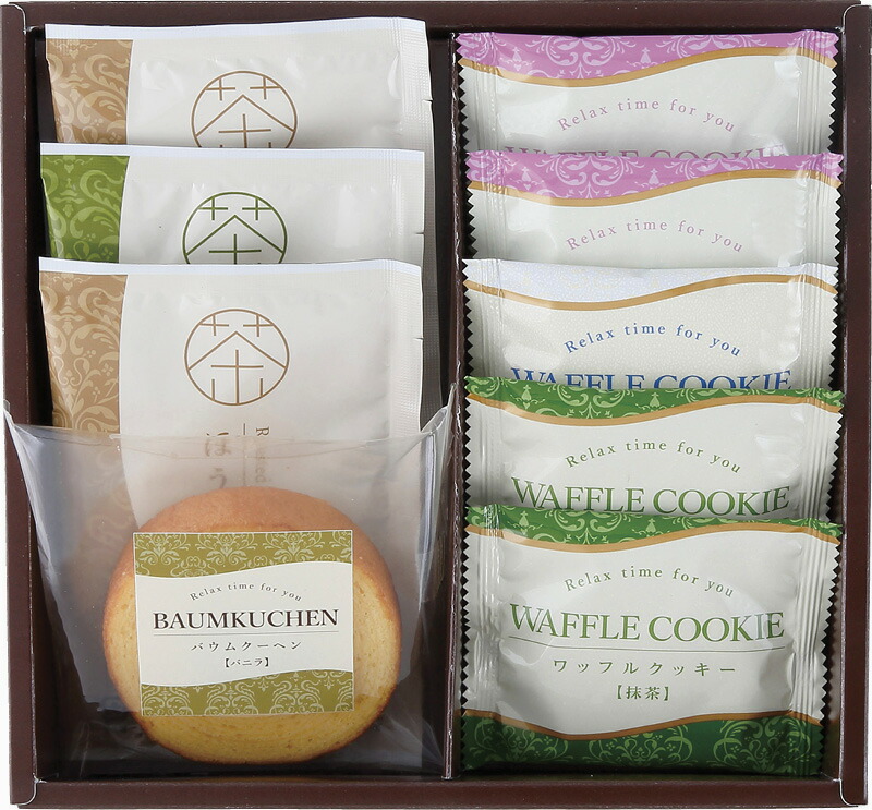 | セット内容 | ワッフルクッキー(抹茶・スイートポテト)・ほうじ茶ラテ×各2、ワッフルクッキー(ホワイトチョコ)・バームクーヘン(プレーン)・抹茶ラテ×各1 |