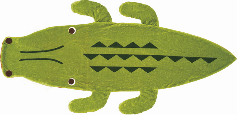 ワニ型のマーメイドブランケットです。ワニにパクりと食べられたようなユーモアのあるデザインです。