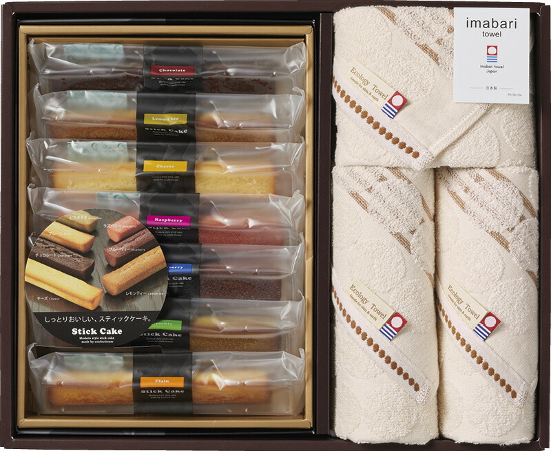 | セット内容 | スティックケーキ(プレーン・チョコ・ラズベリー・ブルーベリー・チーズ・ピスタチオ・レモンティ)×各1、フェイスタオル(34×80cm)×2、ウォッシュタオル(34×35cm)×1 |