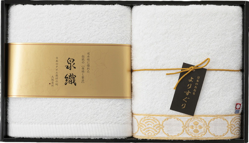 日本のタオルの2大名産地である高吸水加工を施した泉州タオルと心地良い純白の今治タオルをセットしたギフトです。認定番号 第2017-1870号
