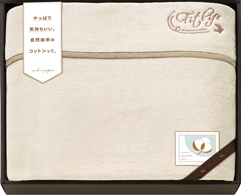 【ラッピング無料】国産 セレクション なめらか衿付き刺繍入り 綿毛布(泉州産) ベージュ CPM18150-BE 綿100% 日本製