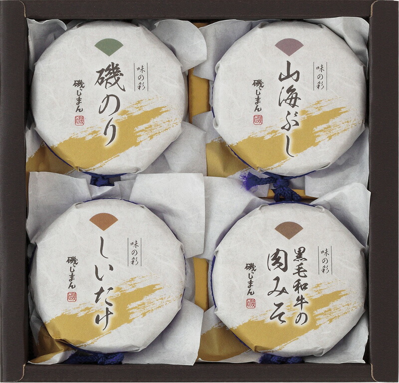 | セット内容 | 磯のり・山海ぶし(各115g)・黒毛和牛の肉みそ(90g)・しいたけ(85g)×各1 |