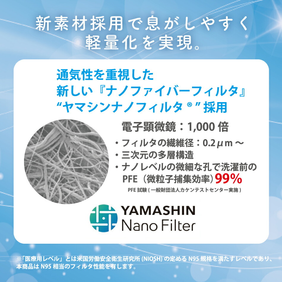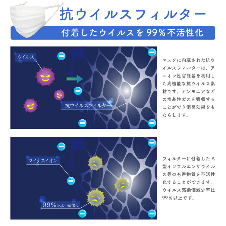マスク生地:表/高密度フィルター ポリプロピレン100% マスク生地:裏/シルク100% 抗ウイルスフィルター/ポリエステル70% 合成繊維(アクリレート系繊維)30% ヤマシンナノフィルタ/ポリプロピレン100% ゴム紐/ポリエステル68% ナイロン21% ポリウレタン11% |